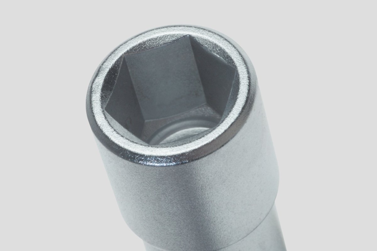 O priză hexagonală se potrivește pe hexagonul piuliței, oferind o aderență foarte bună și o bună transmitere a cuplului.