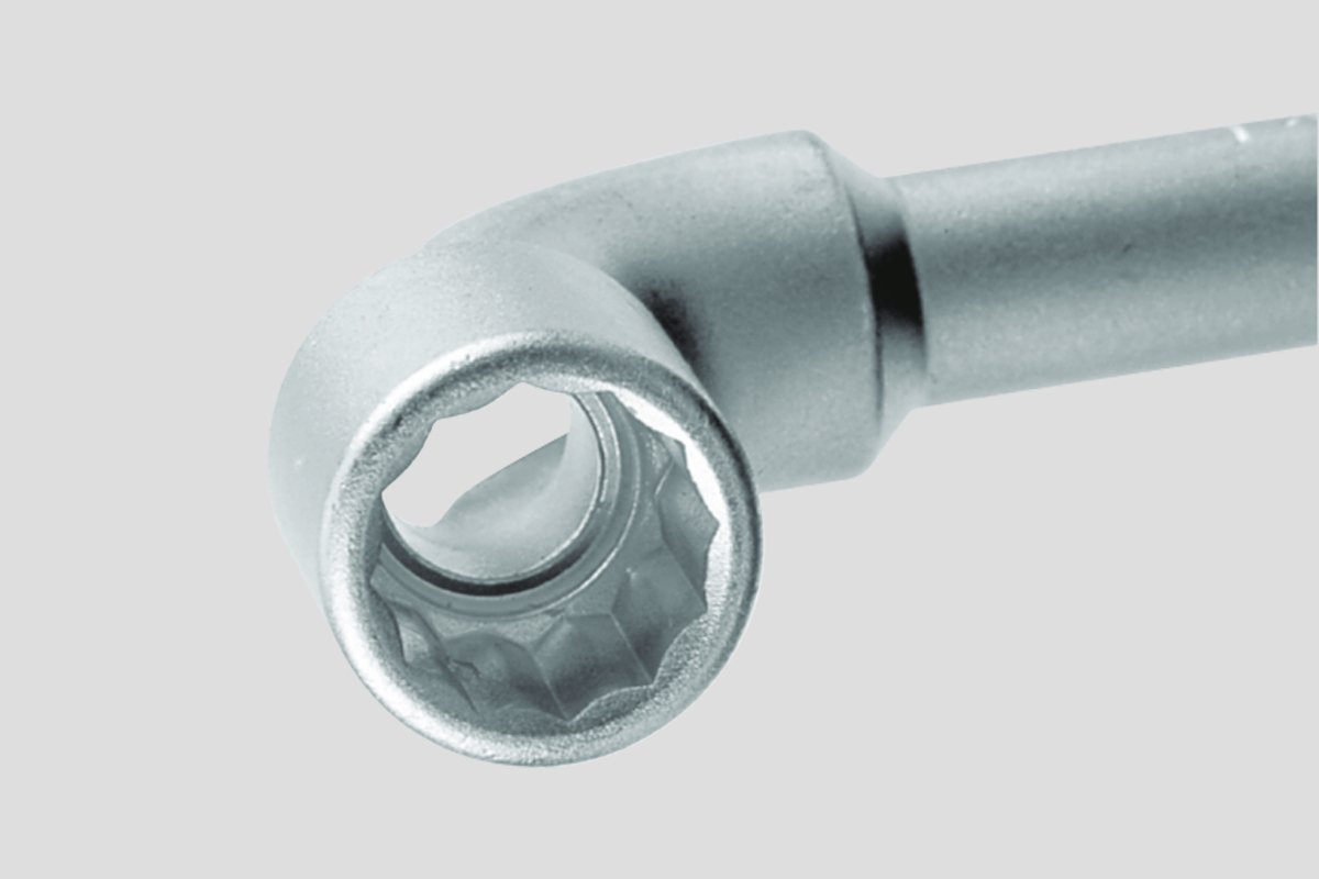 Partea lungă este adânc perforată, ceea ce o face ideală pentru utilizarea cu tije filetate. La o cheie de 24 mm, adâncimea de perforare este de 67 mm. Înălțimea ochiului oferă o putere maximă pe piulițele „înalte”.